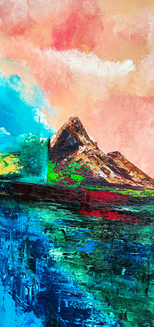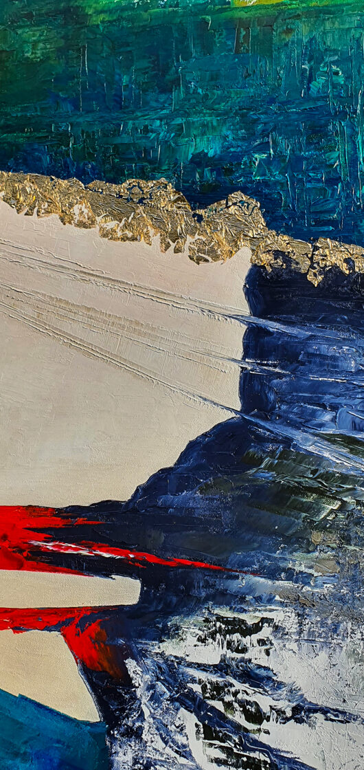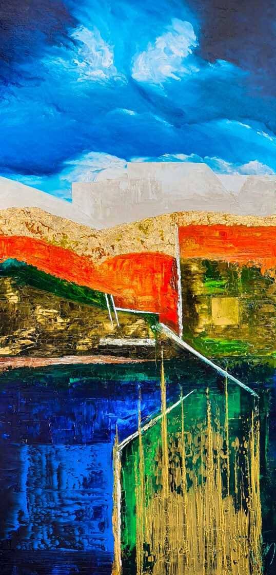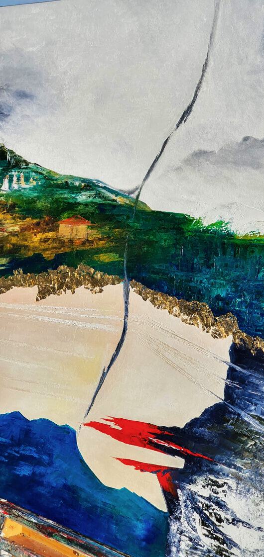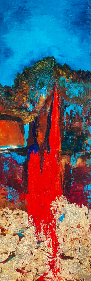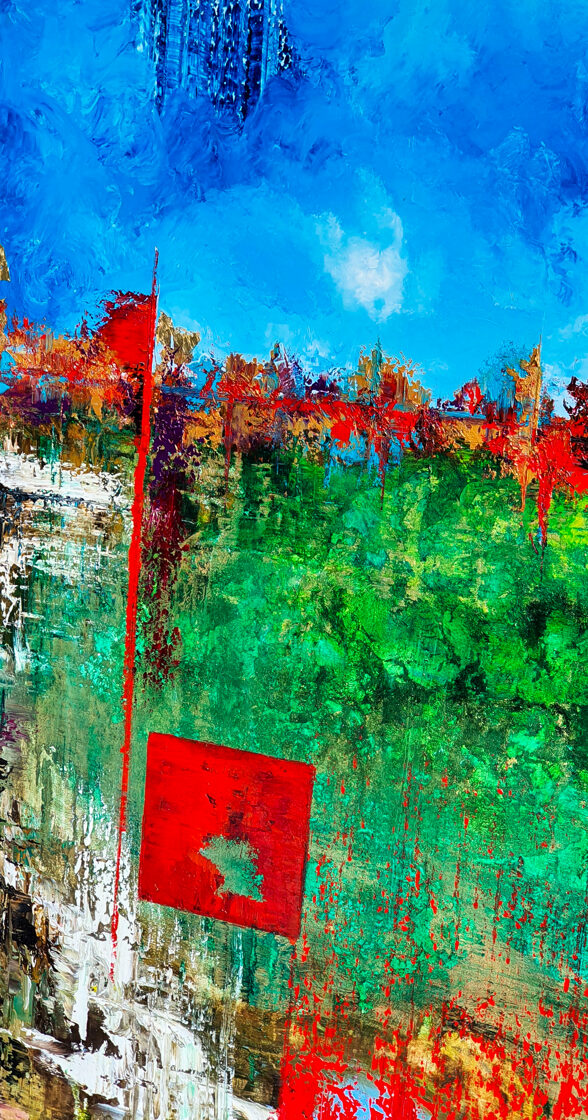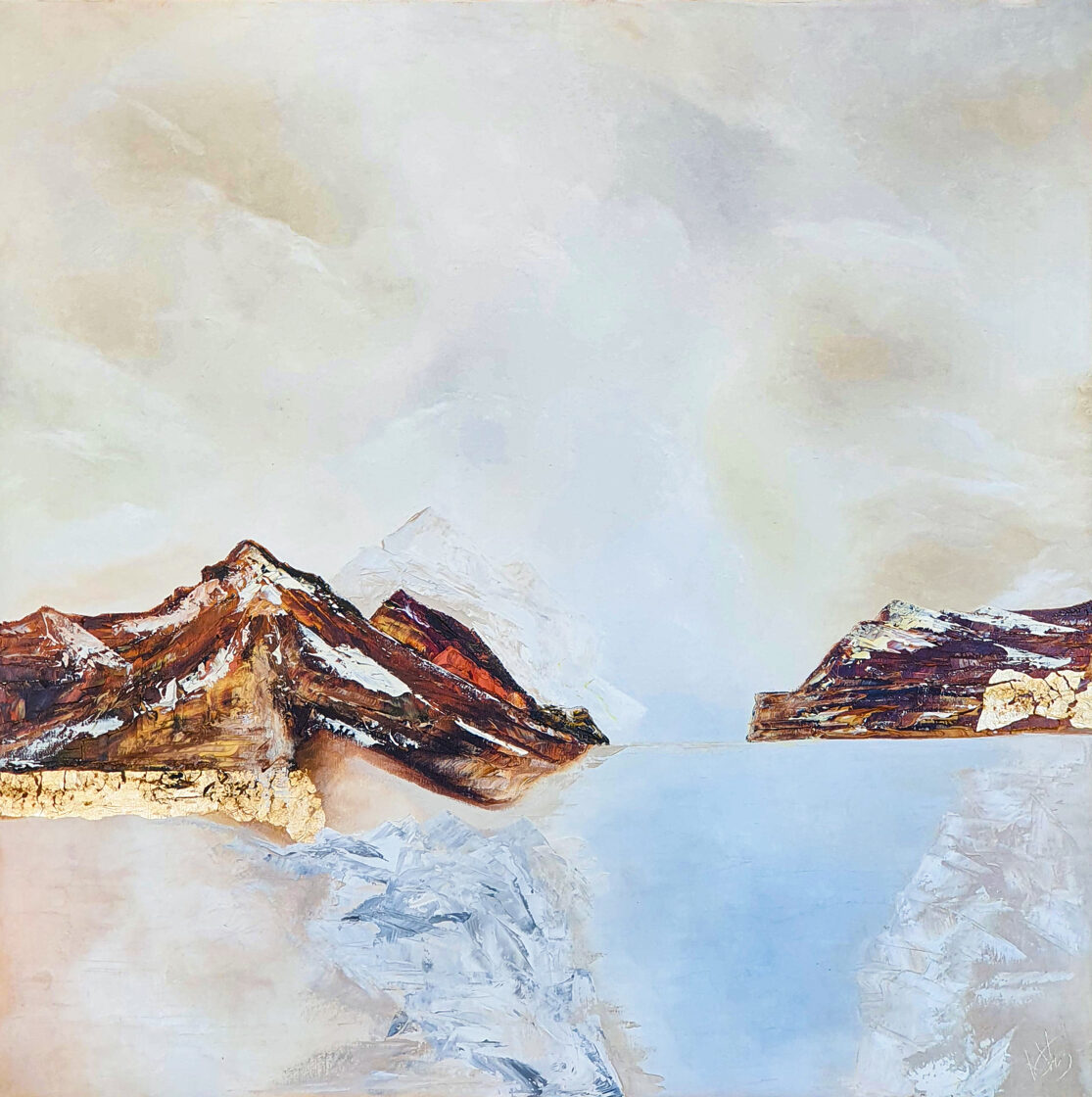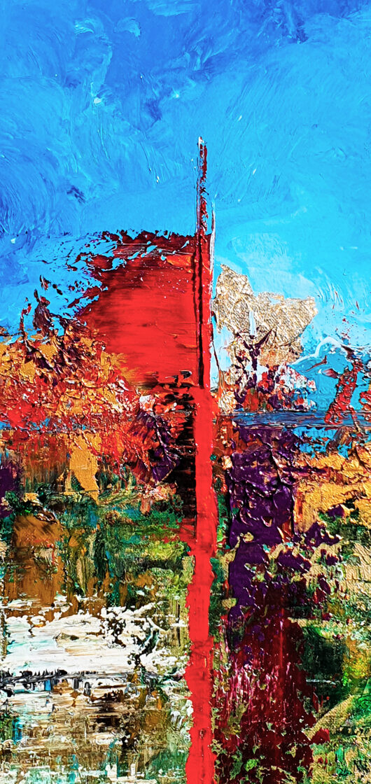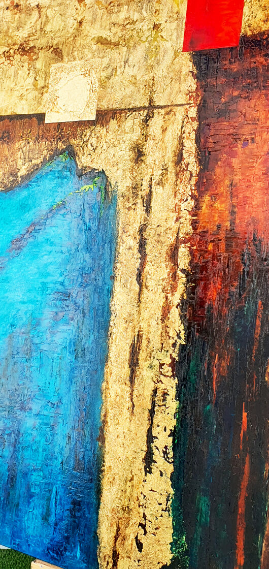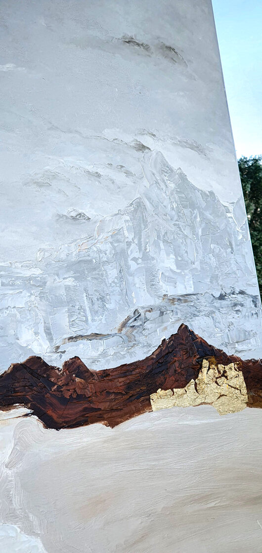 Sin embargo, bajo el pincel del artista, el quadríptico no representa este periodo histórico difícil y triste, sino todo lo contrario: en los lienzos aparece una pureza celestial intacta. Se despliega ante nosotros un estado etéreo, una condición inmaculada después de la creación, que a la vez es portadora de la bondad innata del nacimiento. Los paisajes pintados bajo el cielo opalino y translúcido, en los colores de los minerales y la tierra, evocan el principio de los tiempos, cuando un estado de ánimo unificado flotaba en el horizonte. La simbología del quadríptico es fácil de interpretar: el mundo perfecto y maravilloso, diverso en su uniformidad paradójica, entregado por Dios, es moldeado y transformado por nosotros, los seres humanos de todos los tiempos, en lo que finalmente llegó a ser.