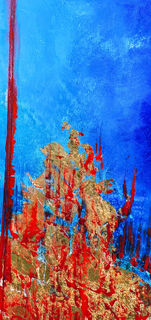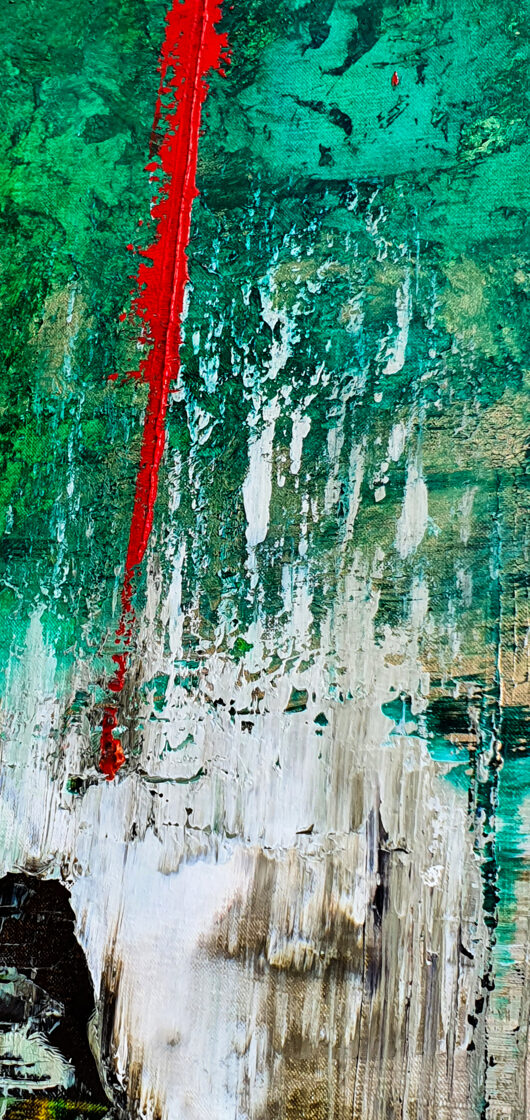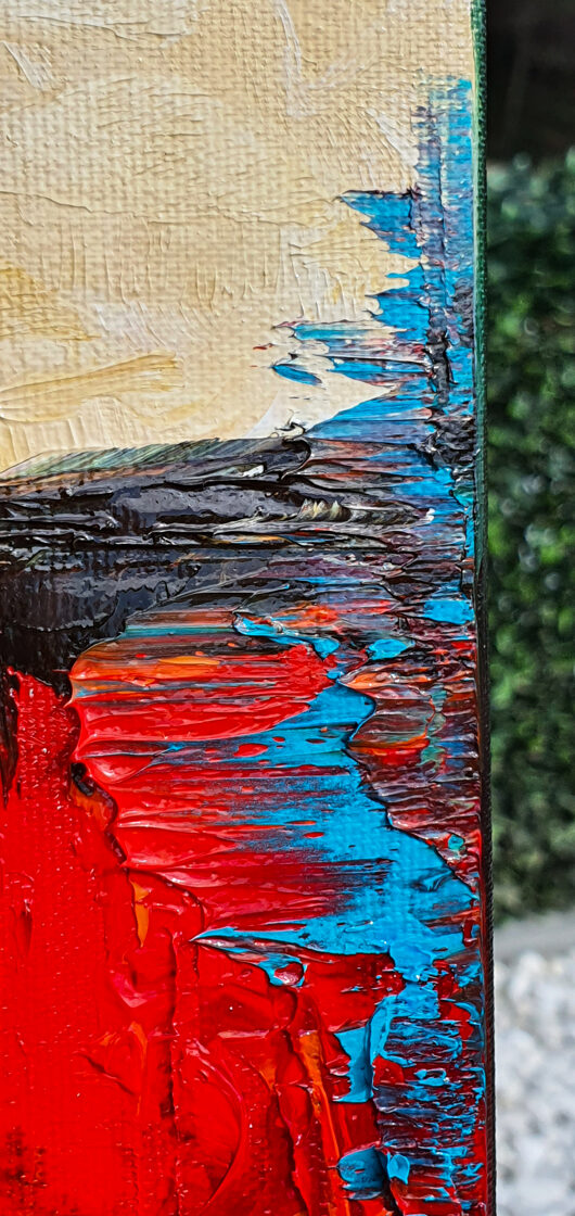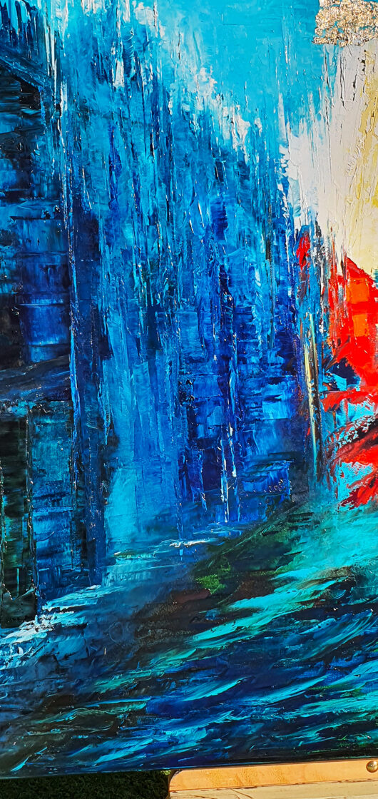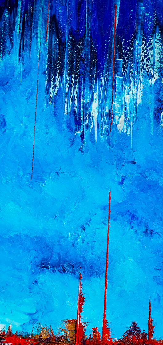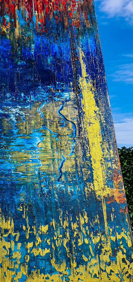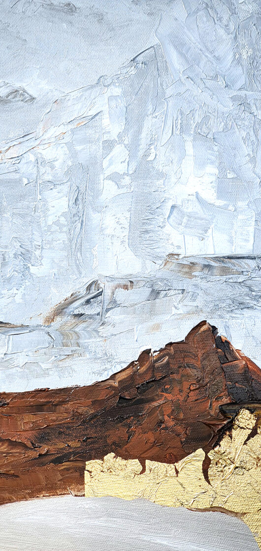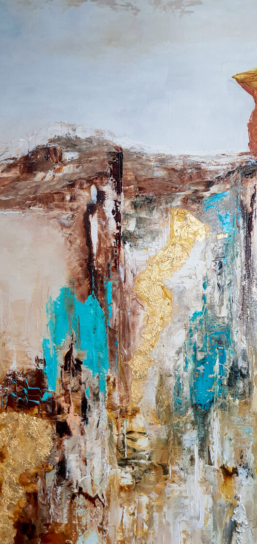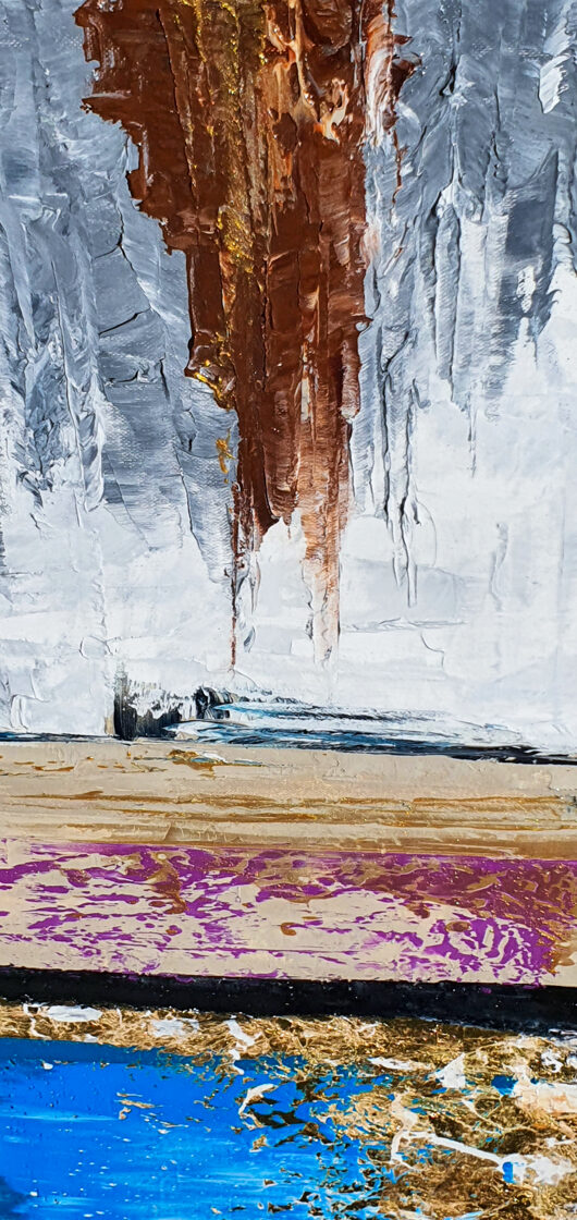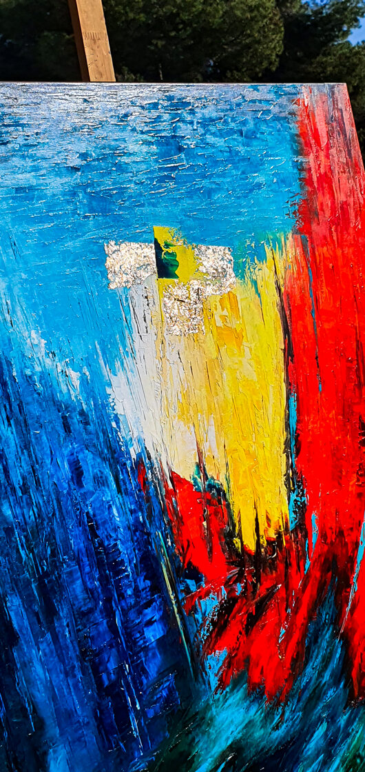 Sin embargo, bajo el pincel del artista, el quadríptico no representa este periodo histórico difícil y triste, sino todo lo contrario: en los lienzos aparece una pureza celestial intacta. Se despliega ante nosotros un estado etéreo, una condición inmaculada después de la creación, que a la vez es portadora de la bondad innata del nacimiento. Los paisajes pintados bajo el cielo opalino y translúcido, en los colores de los minerales y la tierra, evocan el principio de los tiempos, cuando un estado de ánimo unificado flotaba en el horizonte. La simbología del quadríptico es fácil de interpretar: el mundo perfecto y maravilloso, diverso en su uniformidad paradójica, entregado por Dios, es moldeado y transformado por nosotros, los seres humanos de todos los tiempos, en lo que finalmente llegó a ser.