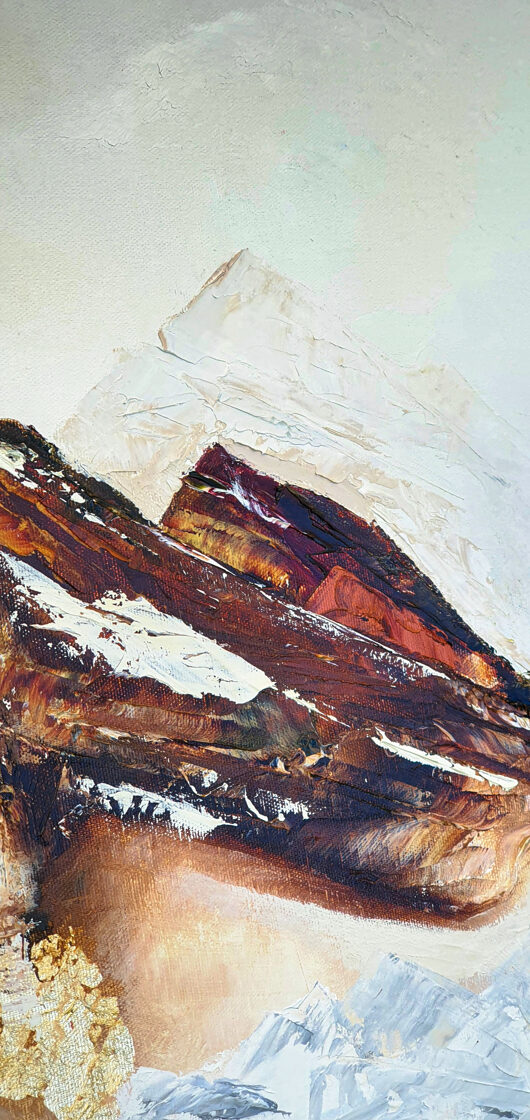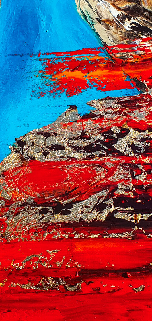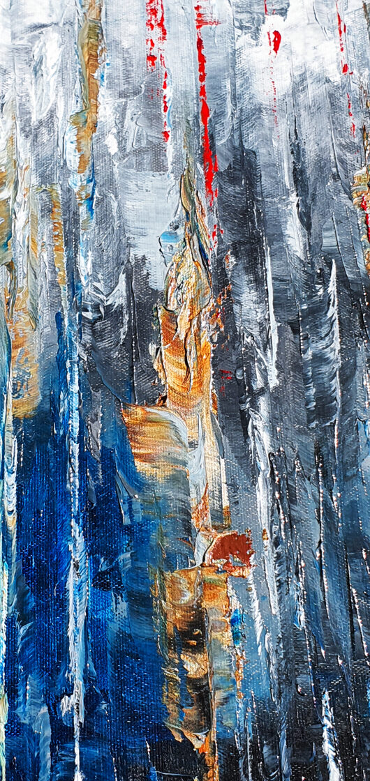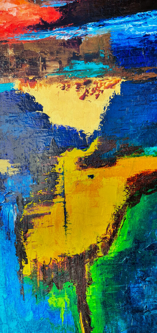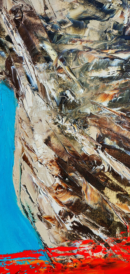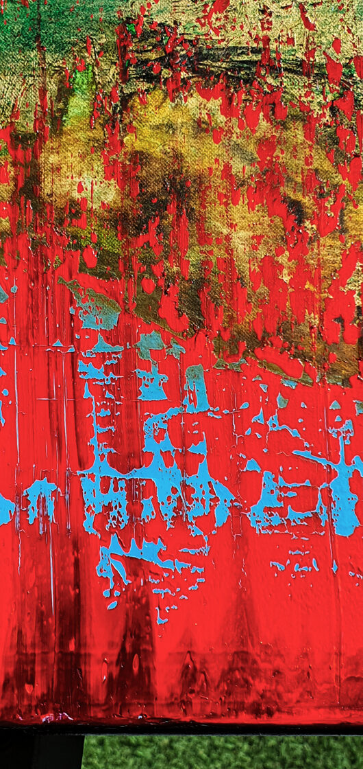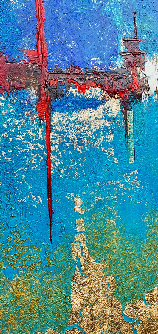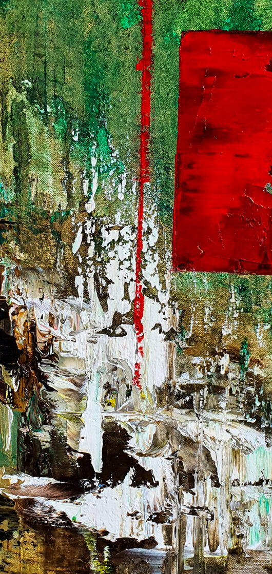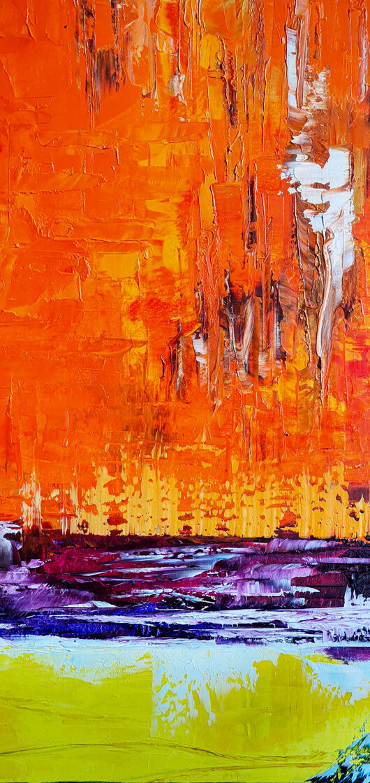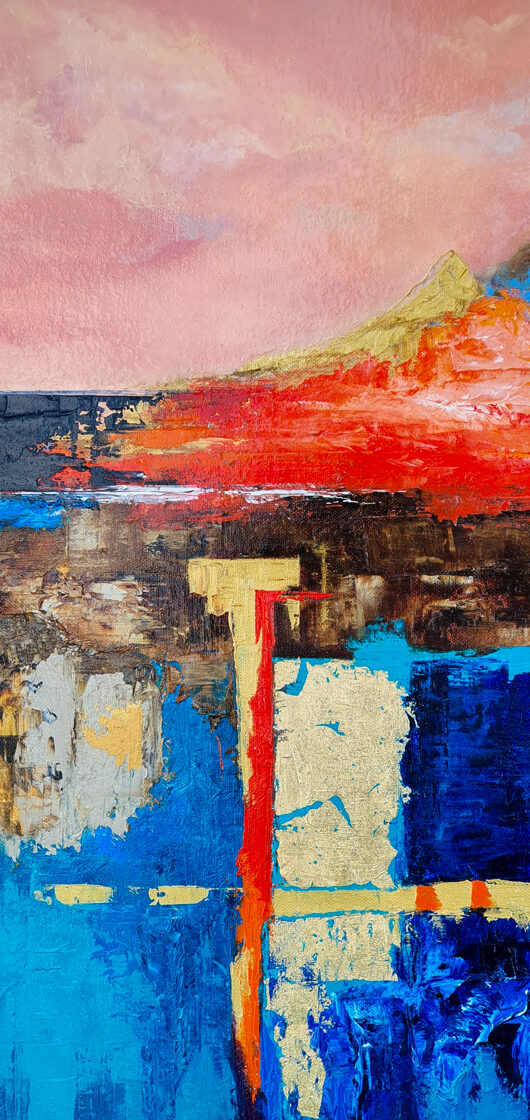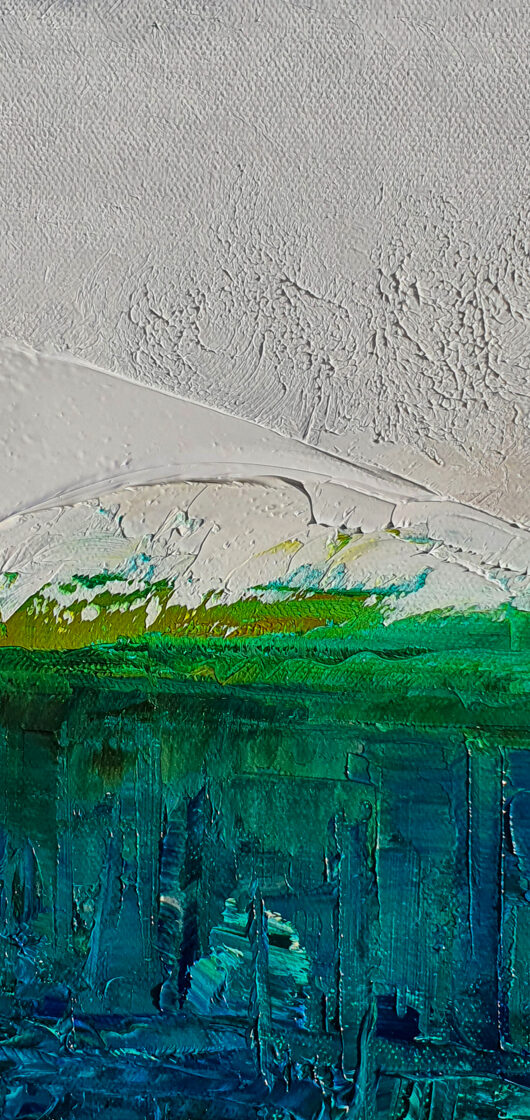 Sin embargo, bajo el pincel del artista, el quadríptico no representa este periodo histórico difícil y triste, sino todo lo contrario: en los lienzos aparece una pureza celestial intacta. Se despliega ante nosotros un estado etéreo, una condición inmaculada después de la creación, que a la vez es portadora de la bondad innata del nacimiento. Los paisajes pintados bajo el cielo opalino y translúcido, en los colores de los minerales y la tierra, evocan el principio de los tiempos, cuando un estado de ánimo unificado flotaba en el horizonte. La simbología del quadríptico es fácil de interpretar: el mundo perfecto y maravilloso, diverso en su uniformidad paradójica, entregado por Dios, es moldeado y transformado por nosotros, los seres humanos de todos los tiempos, en lo que finalmente llegó a ser.
