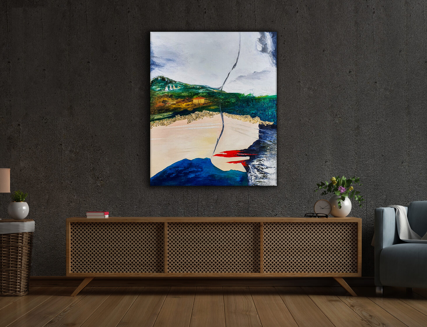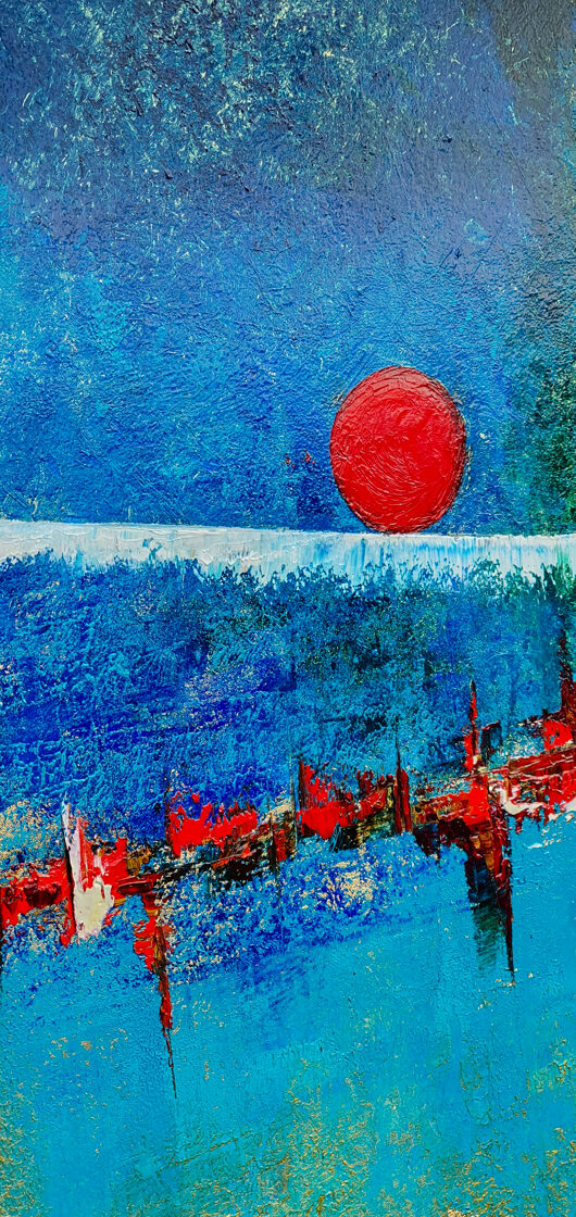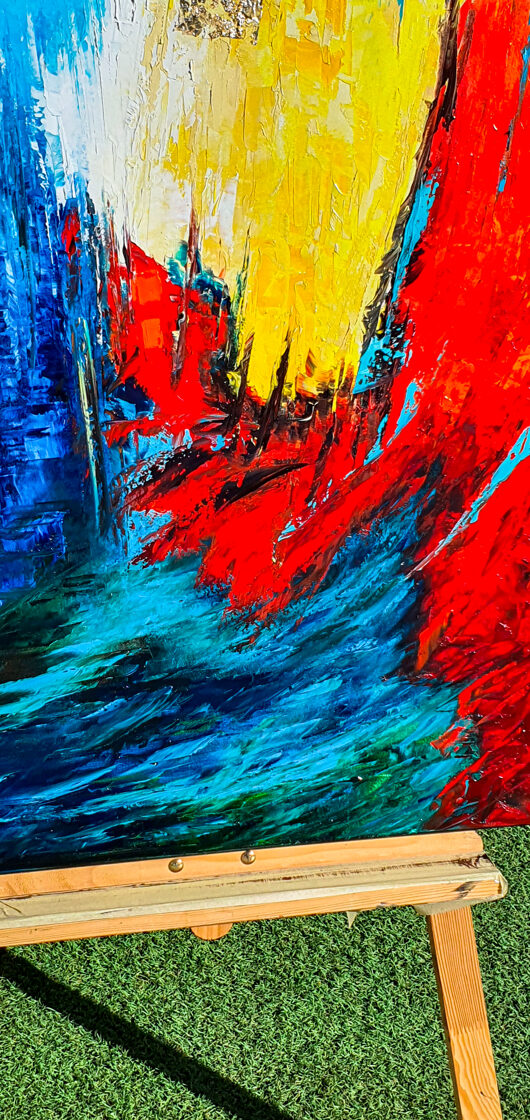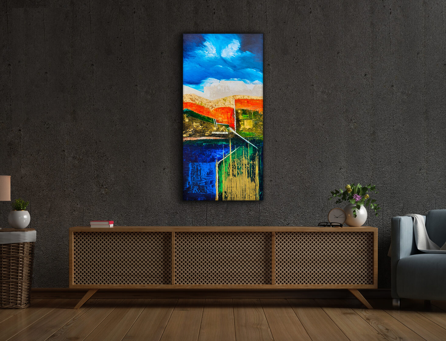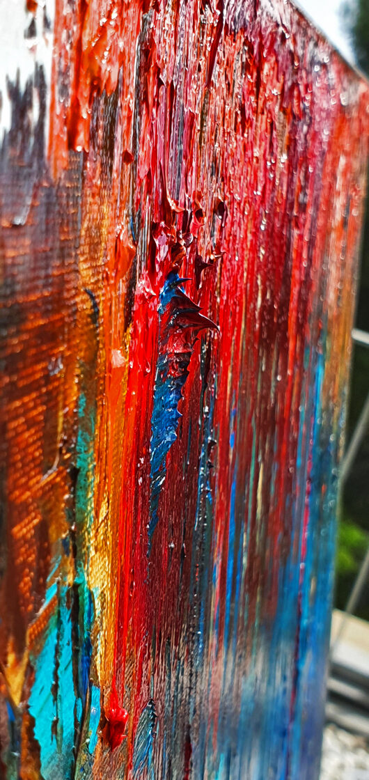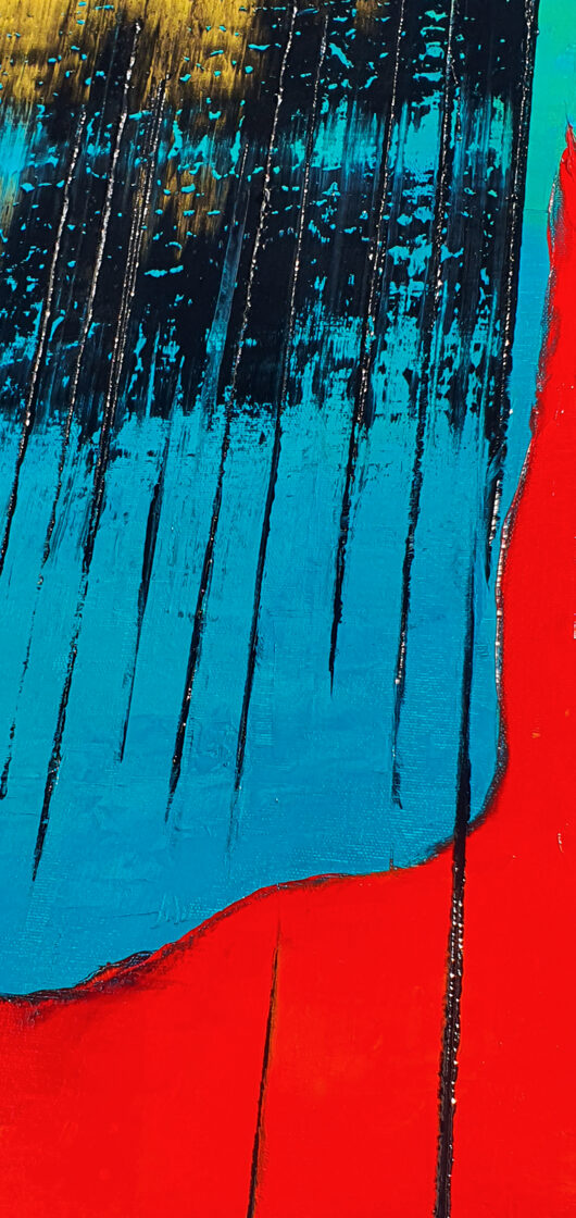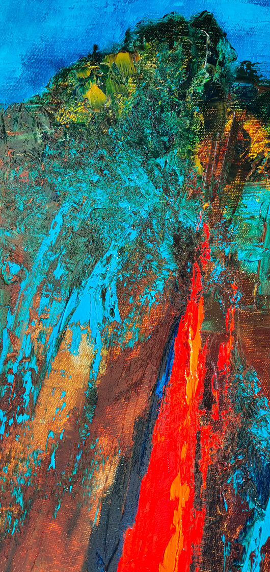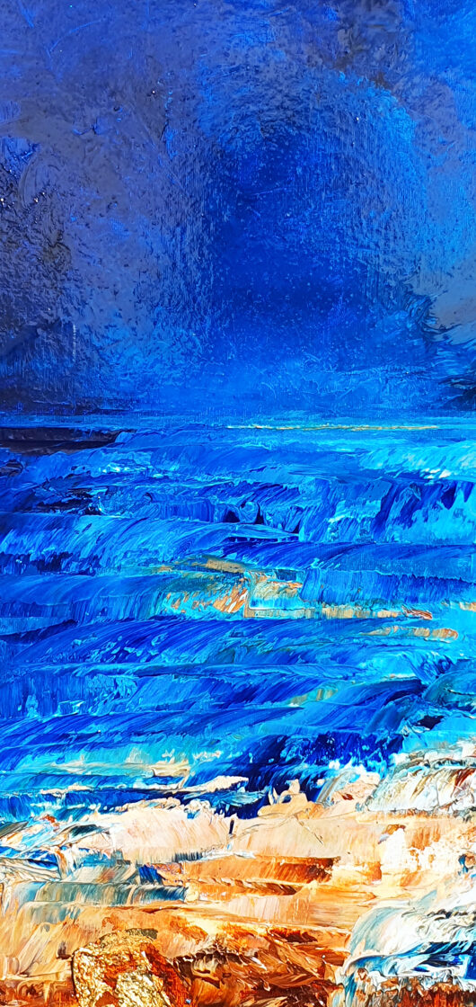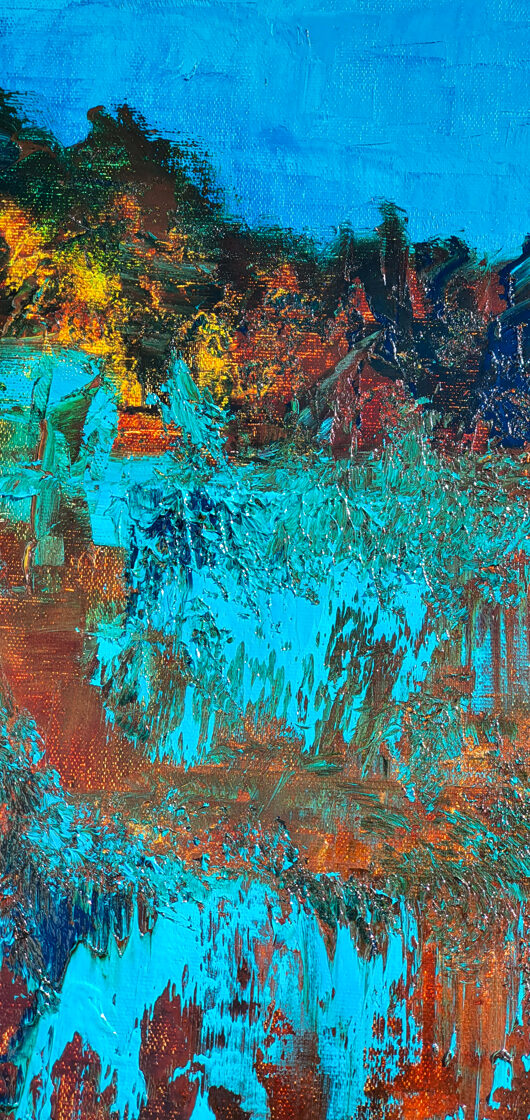 Sin embargo, bajo el pincel del artista, el quadríptico no representa este periodo histórico difícil y triste, sino todo lo contrario: en los lienzos aparece una pureza celestial intacta. Se despliega ante nosotros un estado etéreo, una condición inmaculada después de la creación, que a la vez es portadora de la bondad innata del nacimiento. Los paisajes pintados bajo el cielo opalino y translúcido, en los colores de los minerales y la tierra, evocan el principio de los tiempos, cuando un estado de ánimo unificado flotaba en el horizonte. La simbología del quadríptico es fácil de interpretar: el mundo perfecto y maravilloso, diverso en su uniformidad paradójica, entregado por Dios, es moldeado y transformado por nosotros, los seres humanos de todos los tiempos, en lo que finalmente llegó a ser.