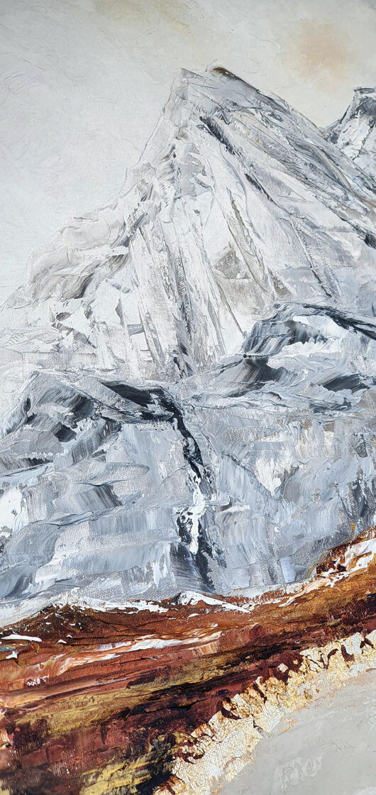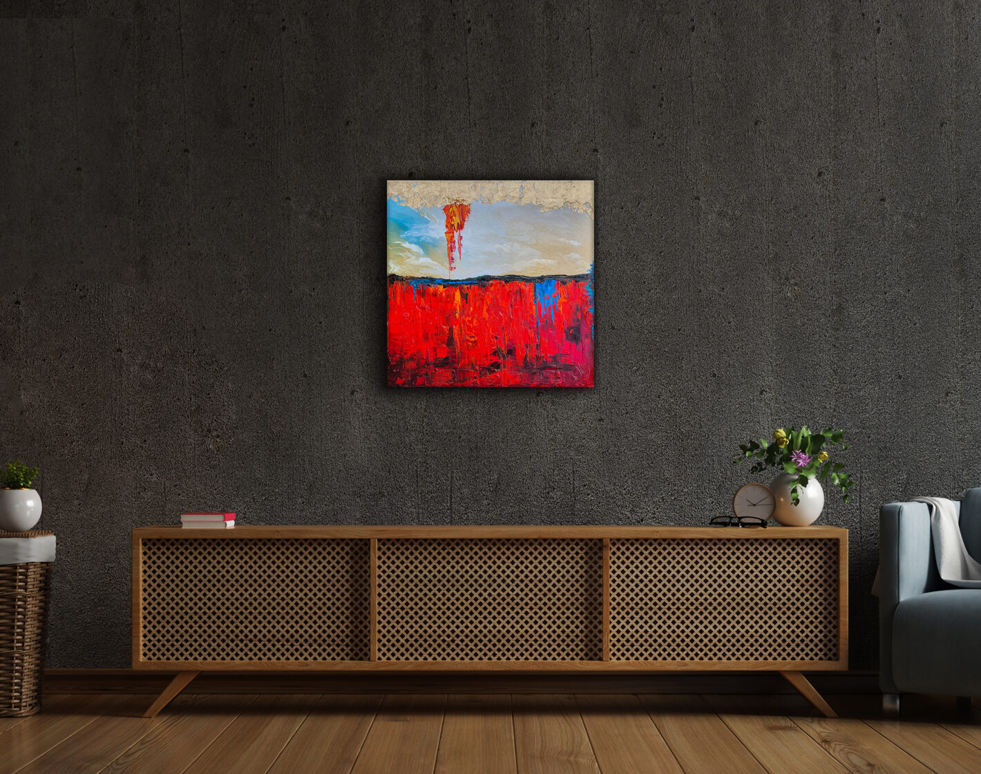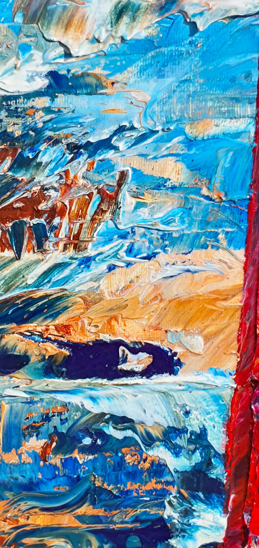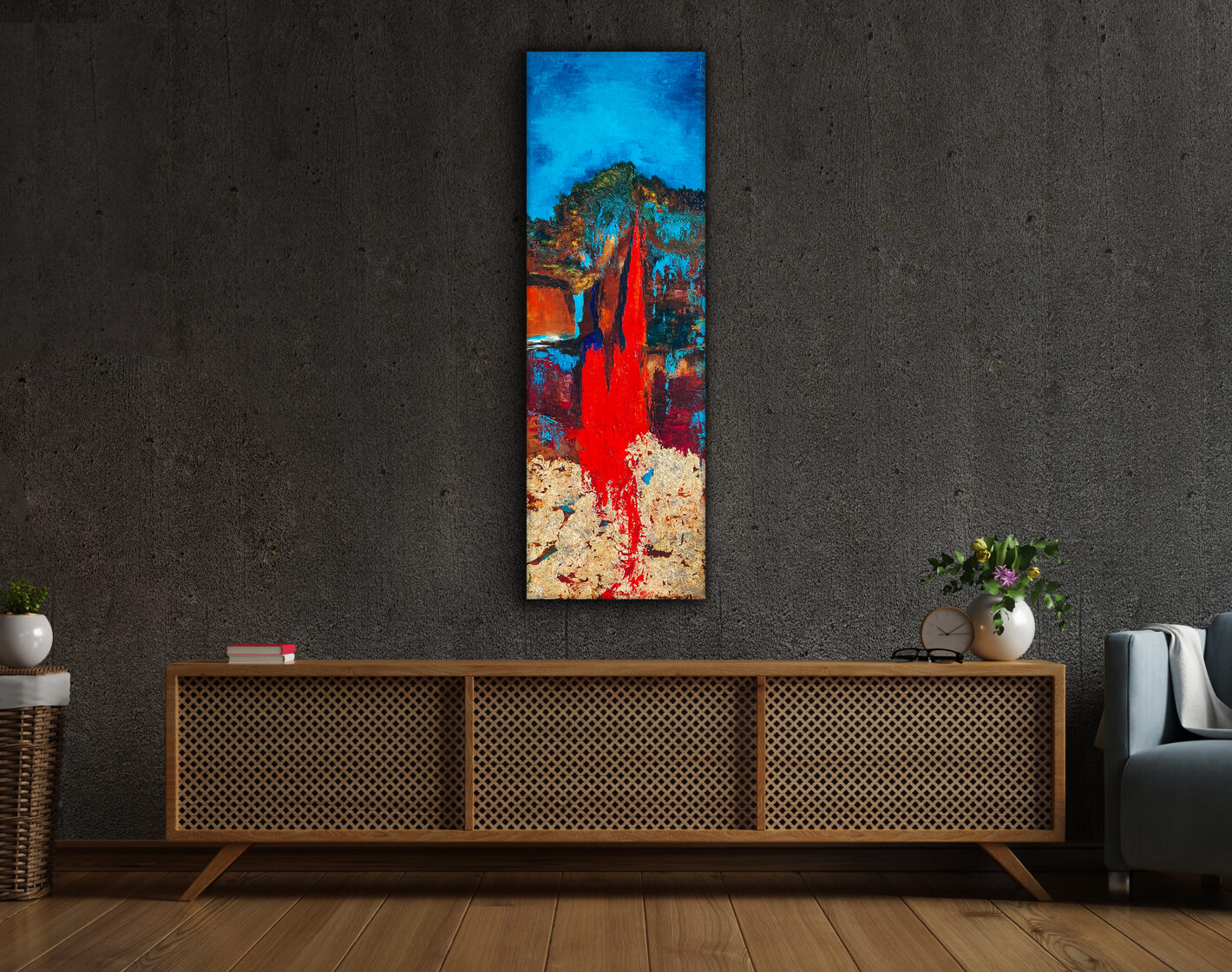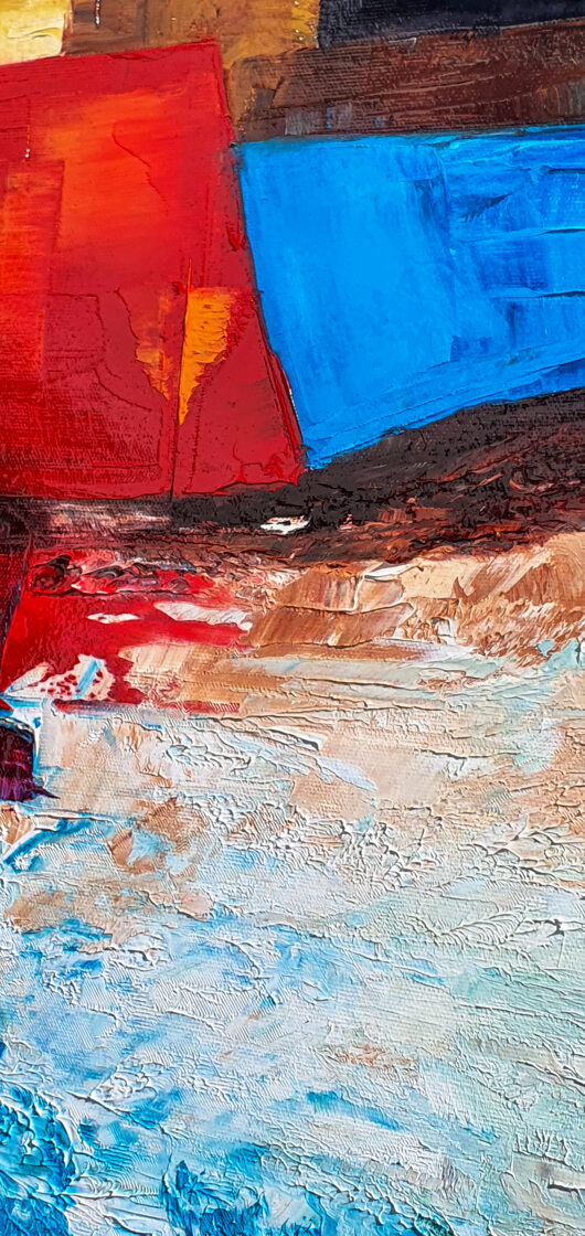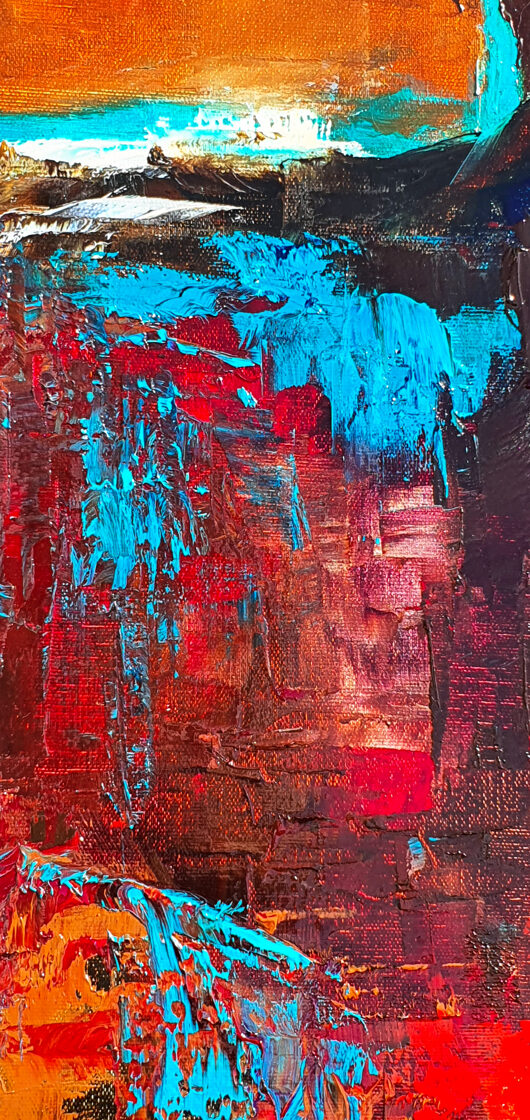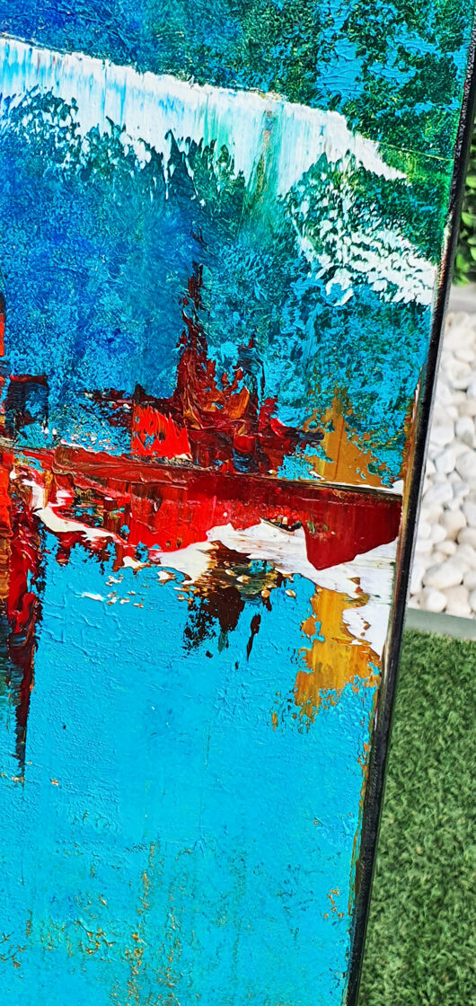 Sin embargo, bajo el pincel del artista, el quadríptico no representa este periodo histórico difícil y triste, sino todo lo contrario: en los lienzos aparece una pureza celestial intacta. Se despliega ante nosotros un estado etéreo, una condición inmaculada después de la creación, que a la vez es portadora de la bondad innata del nacimiento. Los paisajes pintados bajo el cielo opalino y translúcido, en los colores de los minerales y la tierra, evocan el principio de los tiempos, cuando un estado de ánimo unificado flotaba en el horizonte. La simbología del quadríptico es fácil de interpretar: el mundo perfecto y maravilloso, diverso en su uniformidad paradójica, entregado por Dios, es moldeado y transformado por nosotros, los seres humanos de todos los tiempos, en lo que finalmente llegó a ser.