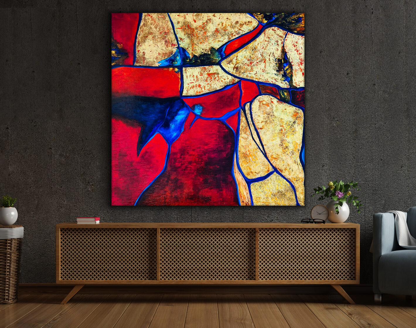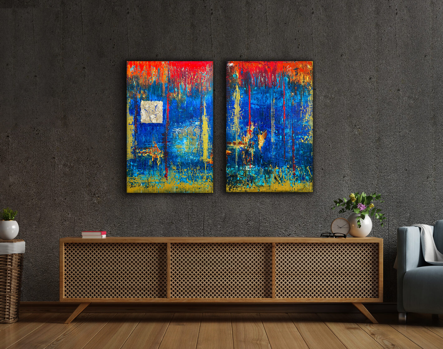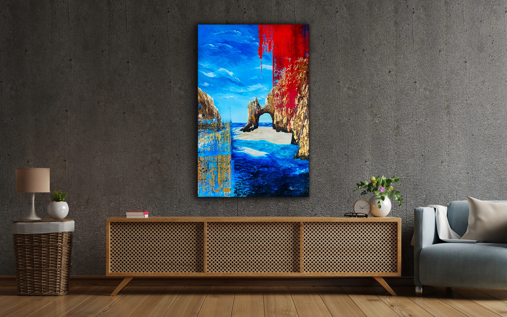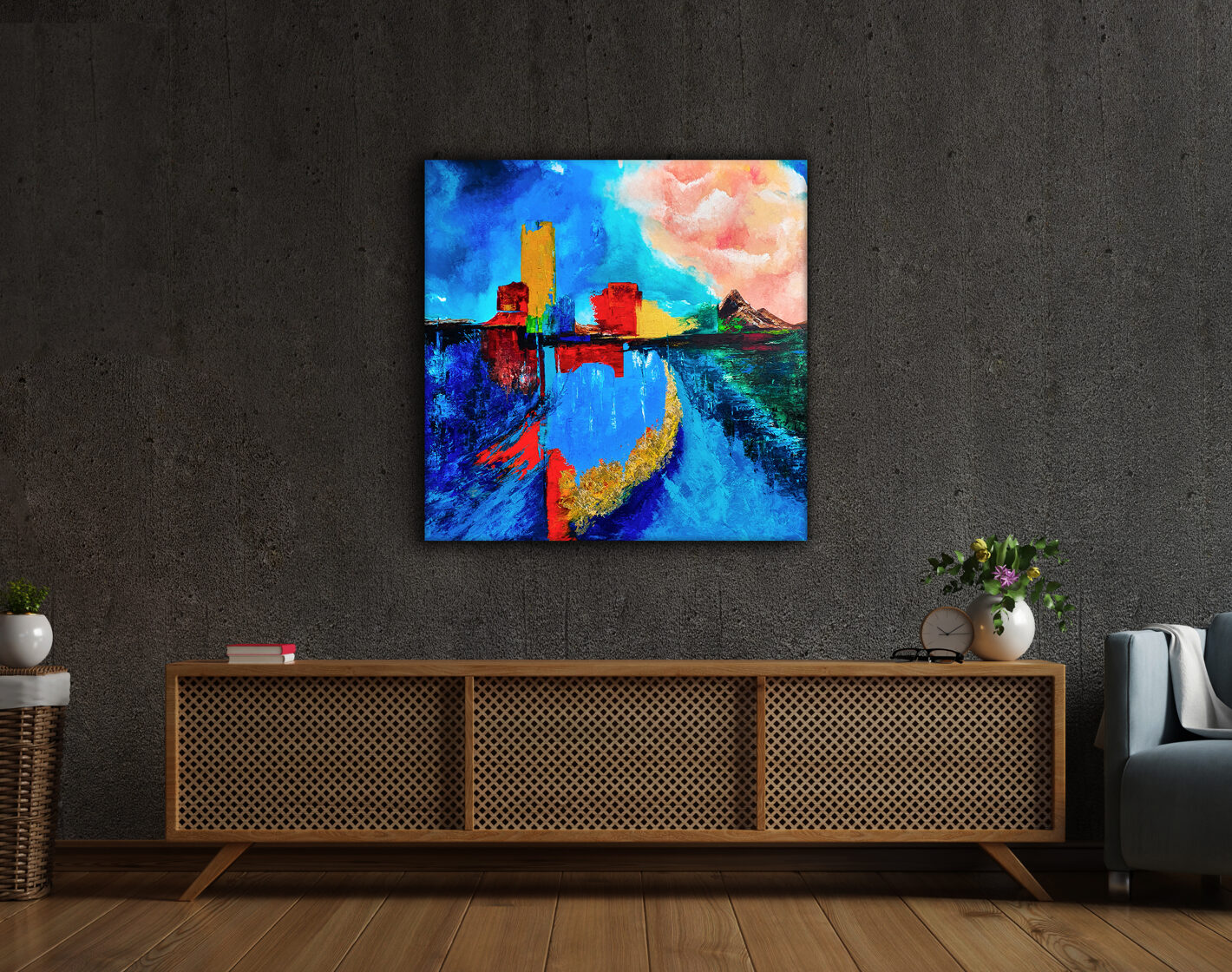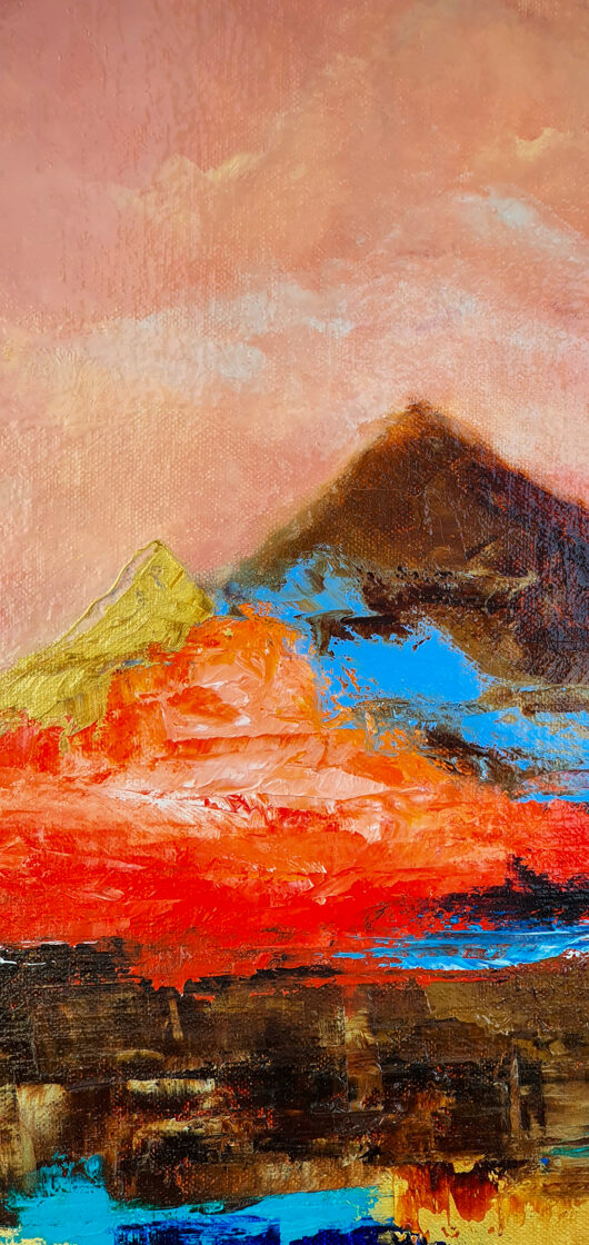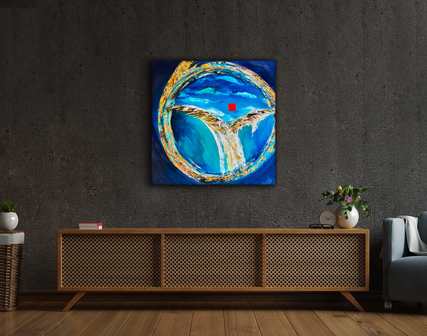 Sin embargo, bajo el pincel del artista, el quadríptico no representa este periodo histórico difícil y triste, sino todo lo contrario: en los lienzos aparece una pureza celestial intacta. Se despliega ante nosotros un estado etéreo, una condición inmaculada después de la creación, que a la vez es portadora de la bondad innata del nacimiento. Los paisajes pintados bajo el cielo opalino y translúcido, en los colores de los minerales y la tierra, evocan el principio de los tiempos, cuando un estado de ánimo unificado flotaba en el horizonte. La simbología del quadríptico es fácil de interpretar: el mundo perfecto y maravilloso, diverso en su uniformidad paradójica, entregado por Dios, es moldeado y transformado por nosotros, los seres humanos de todos los tiempos, en lo que finalmente llegó a ser.