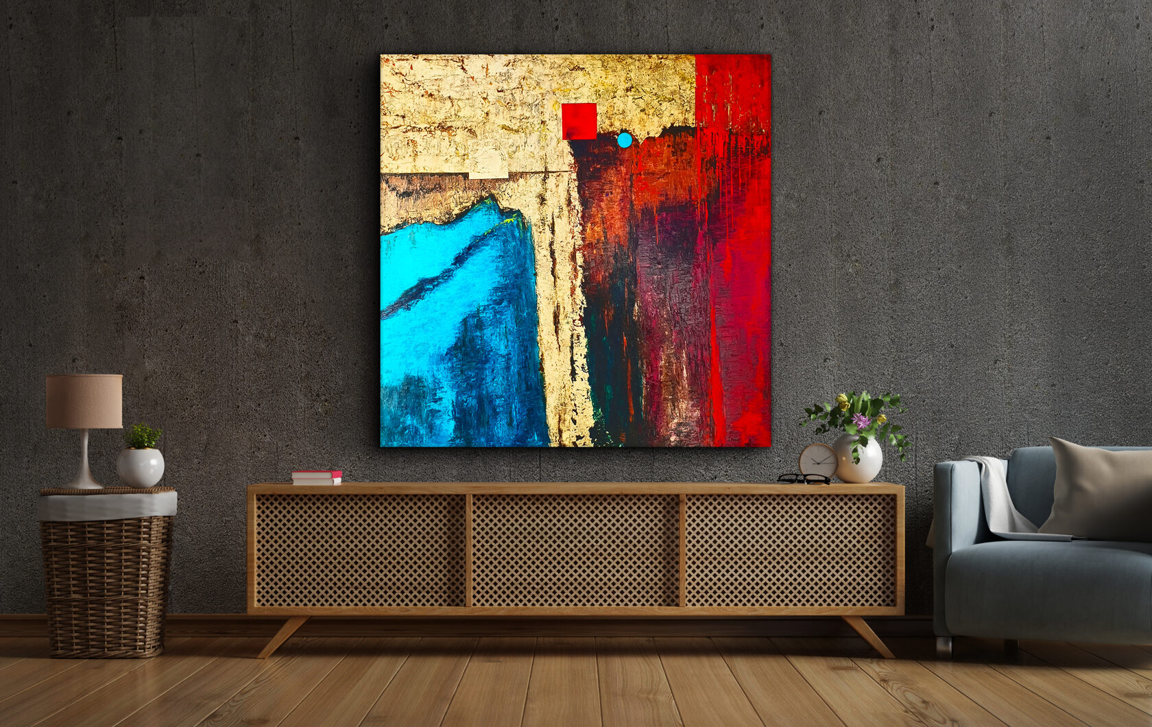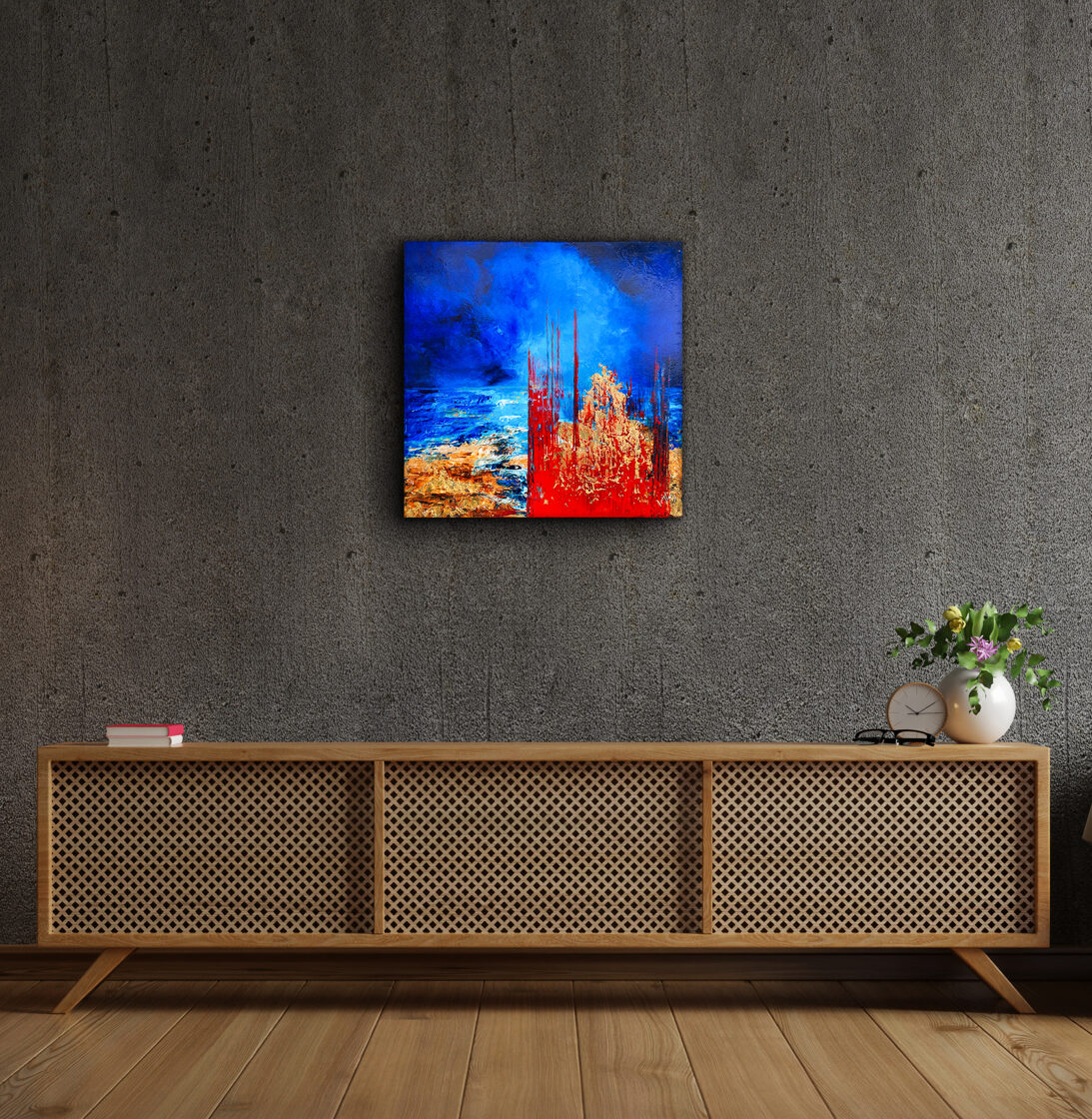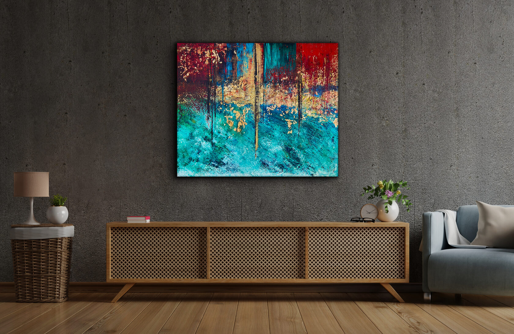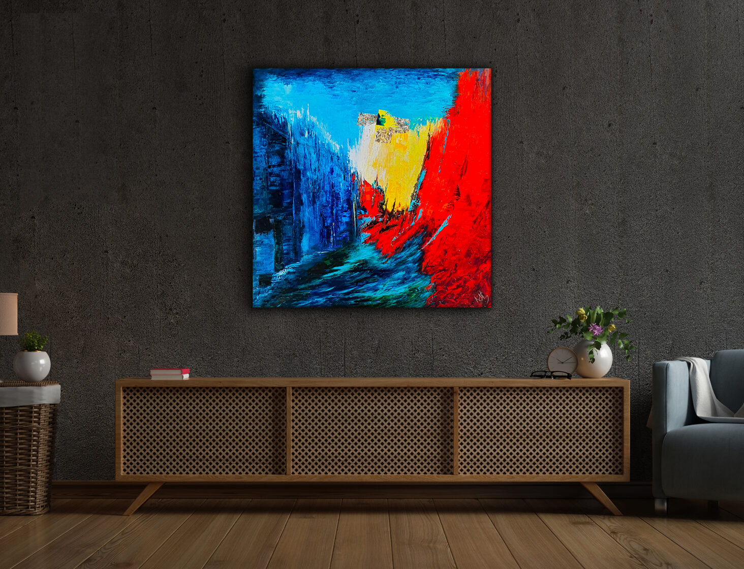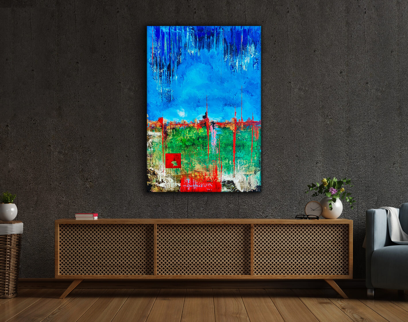 Sin embargo, bajo el pincel del artista, el quadríptico no representa este periodo histórico difícil y triste, sino todo lo contrario: en los lienzos aparece una pureza celestial intacta. Se despliega ante nosotros un estado etéreo, una condición inmaculada después de la creación, que a la vez es portadora de la bondad innata del nacimiento. Los paisajes pintados bajo el cielo opalino y translúcido, en los colores de los minerales y la tierra, evocan el principio de los tiempos, cuando un estado de ánimo unificado flotaba en el horizonte. La simbología del quadríptico es fácil de interpretar: el mundo perfecto y maravilloso, diverso en su uniformidad paradójica, entregado por Dios, es moldeado y transformado por nosotros, los seres humanos de todos los tiempos, en lo que finalmente llegó a ser.