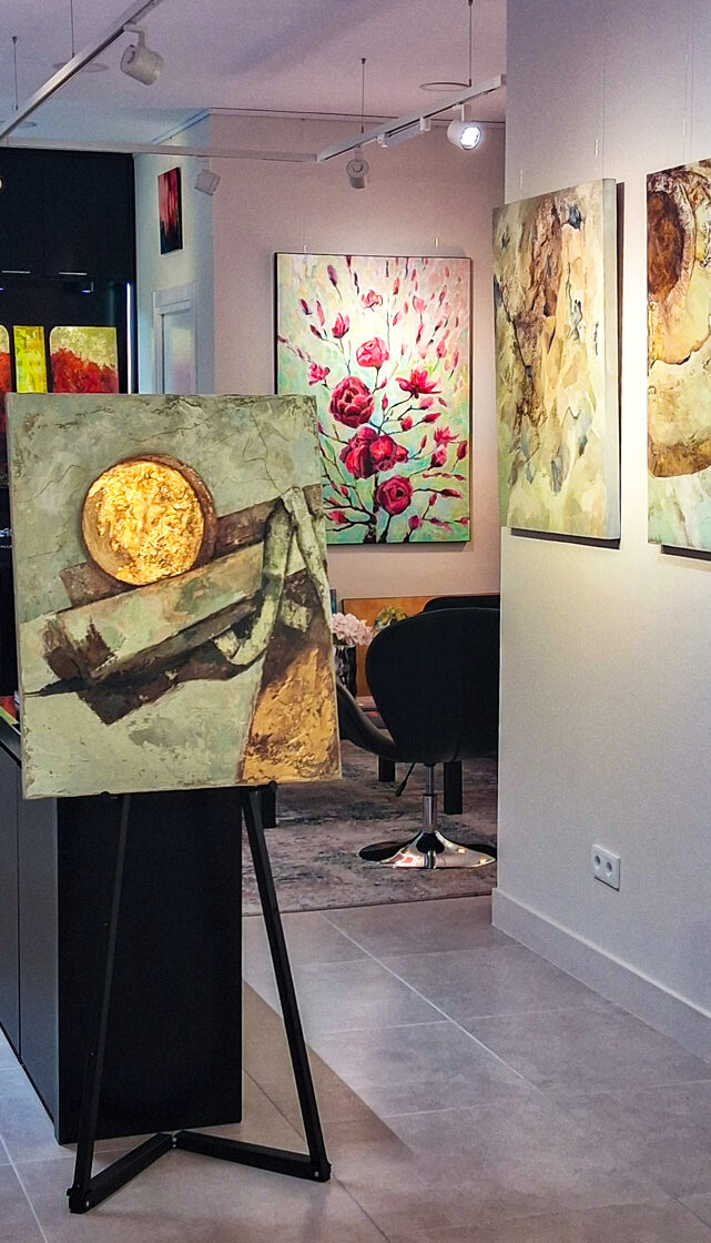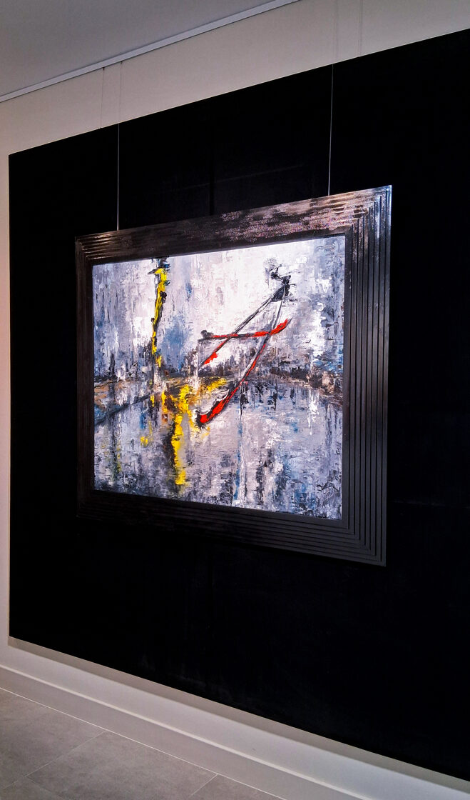 In the works, abstraction breaks through the boundaries of realism at several points. Natural phenomena captured on canvas and wooden panels are brought into an apparently rigid stillness by seizing a fleeting moment of movement; at the same time, one almost expects the picture to move.