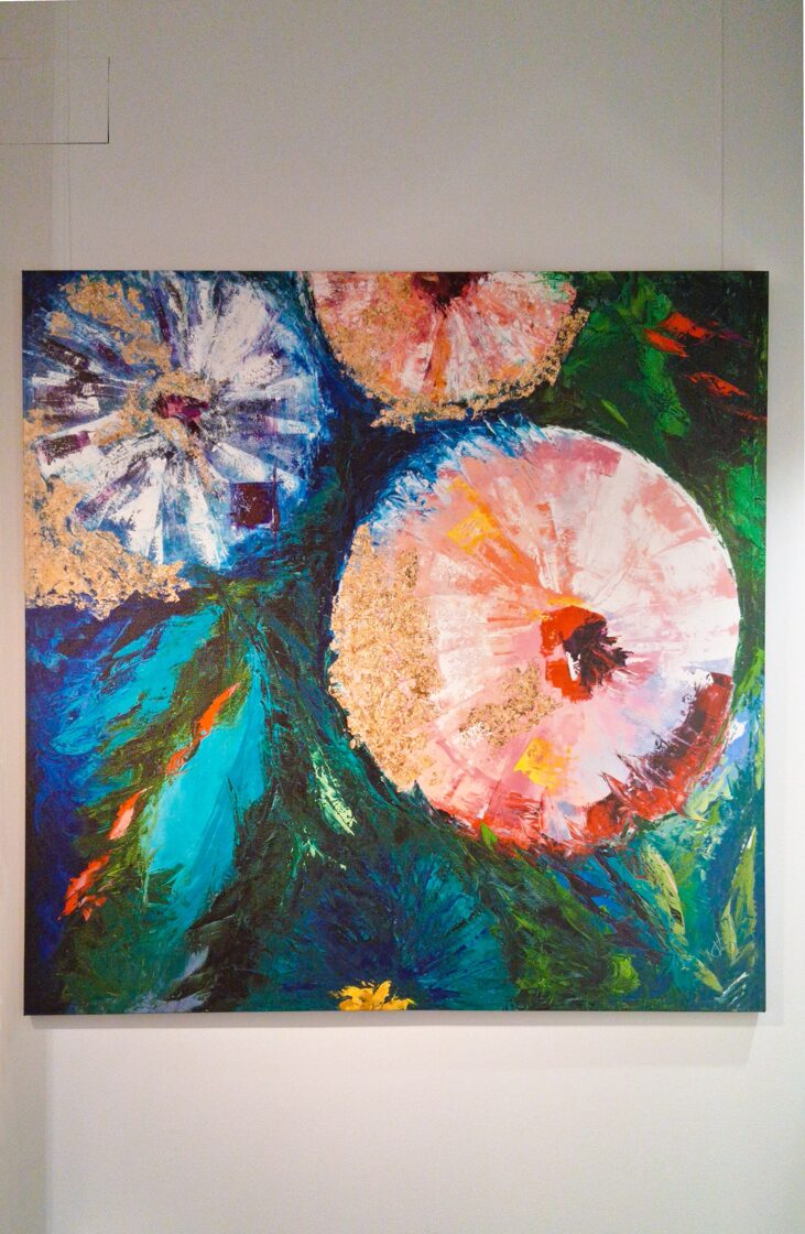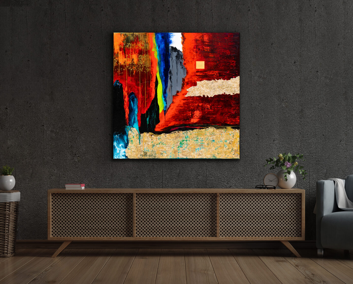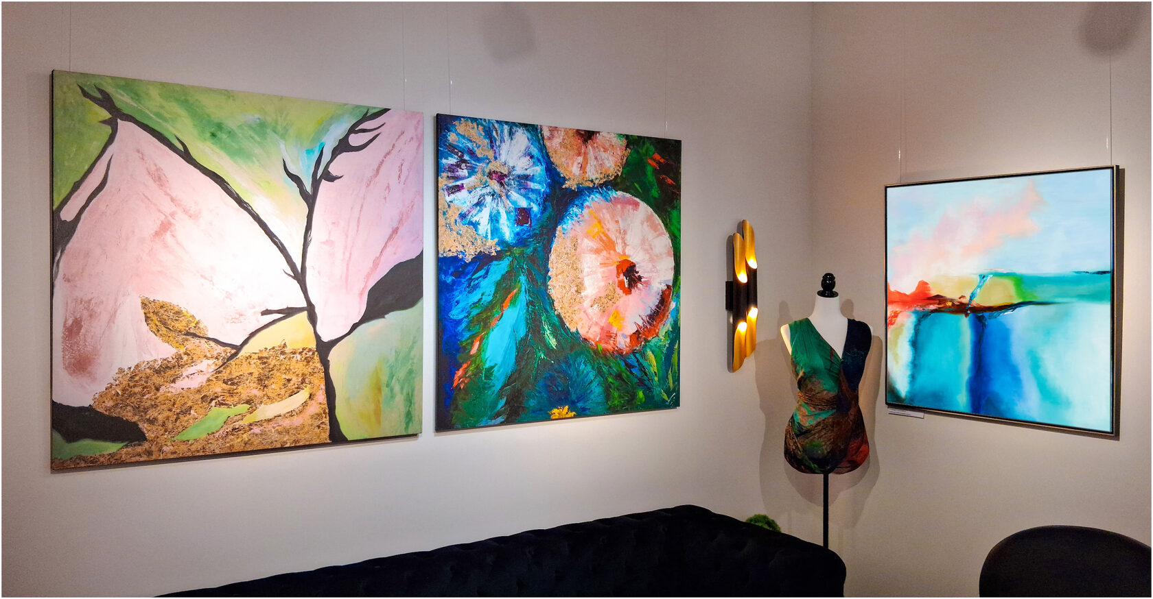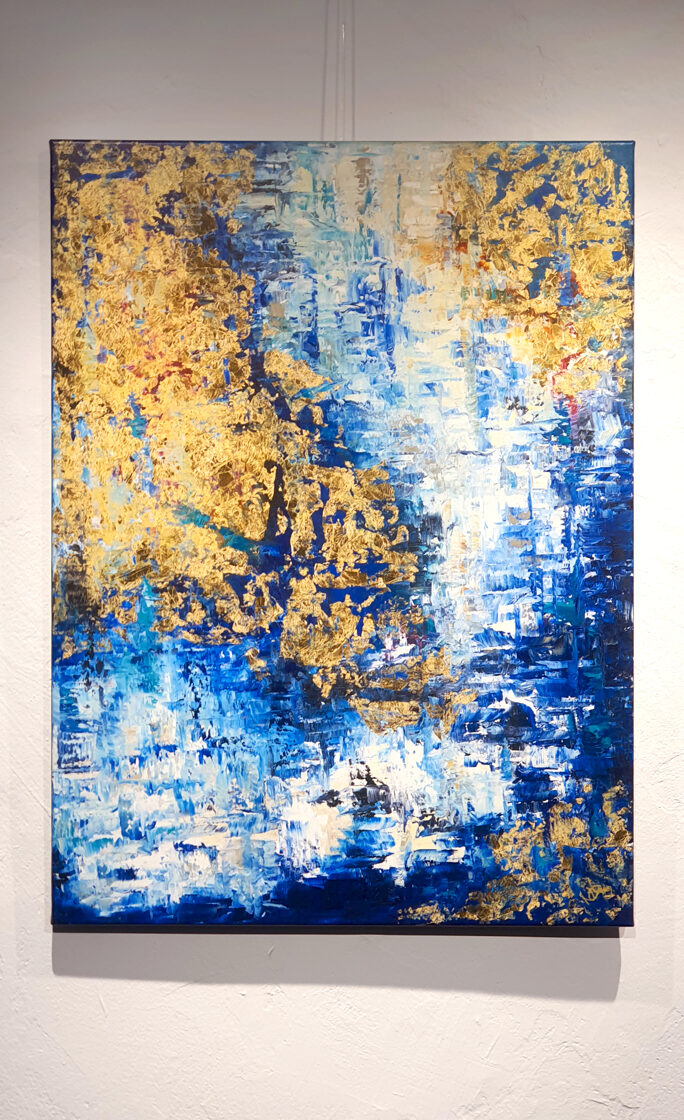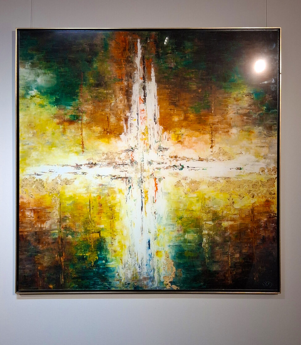 A festményeken a fény önálló minőséggé válik: egyszerre teremt teret, hiányérzetet, irányt, megnyugvást és belső feszültséget. Az aranyfelületek mögül életre kelő és opálba ömlő színmezők, határozott struktúrák a látható és a láthatatlan belső világ közötti átjárás élményét közvetítik, miközben a kompozíciók érzelmi és gondolati tartományokat is megnyitnak.