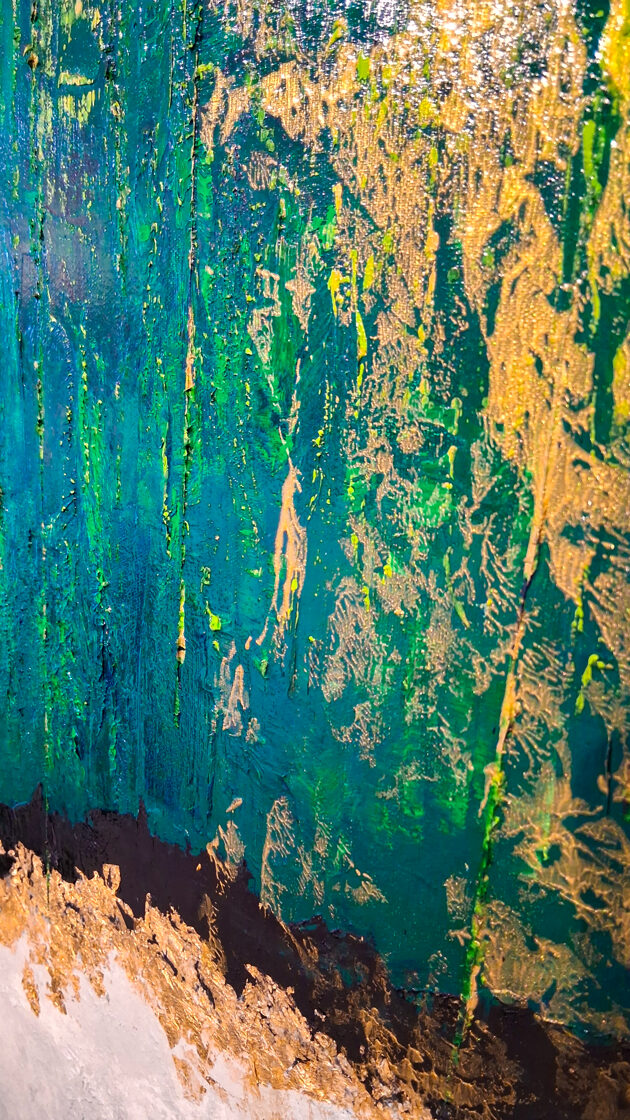 En la región superior, en una corriente aguda y poderosa de verde, desciende una cascada dorada: en ese momento, las luces de las esferas celestes se disuelven hacia la tierra. Los verdes son símbolos de juventud y fuerza fresca, lo que también puede interpretarse como metáfora de la figura de Euxénipo , mientras que los destellos dorados llevan la promesa de la elección —pero su luz fragmentada y deshilachada sugiere que aquí falta algo del resplandor pleno.